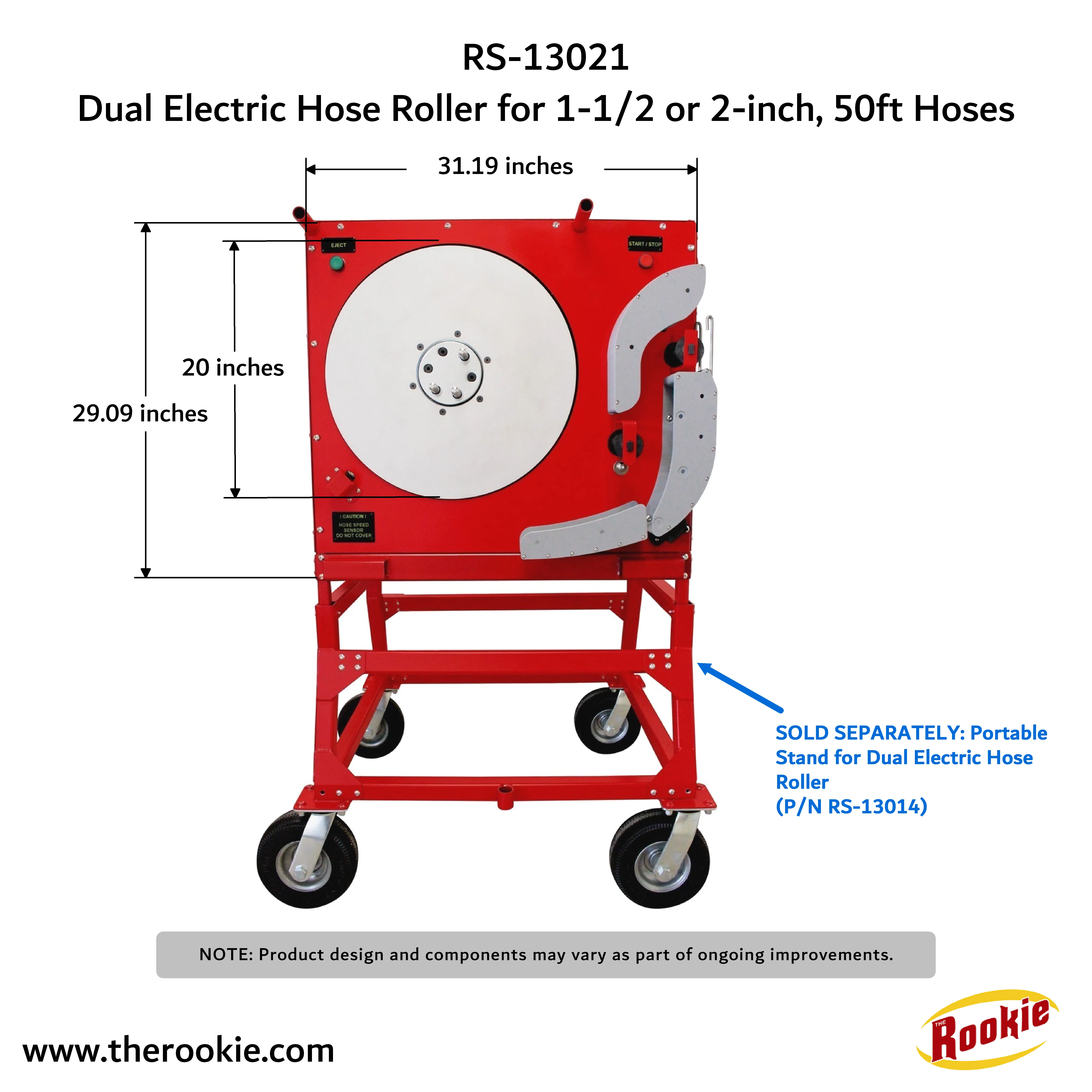 RS-13021 Dual Electric Hose Roller for 1-1/2 or 2-inch, 50ft Hoses