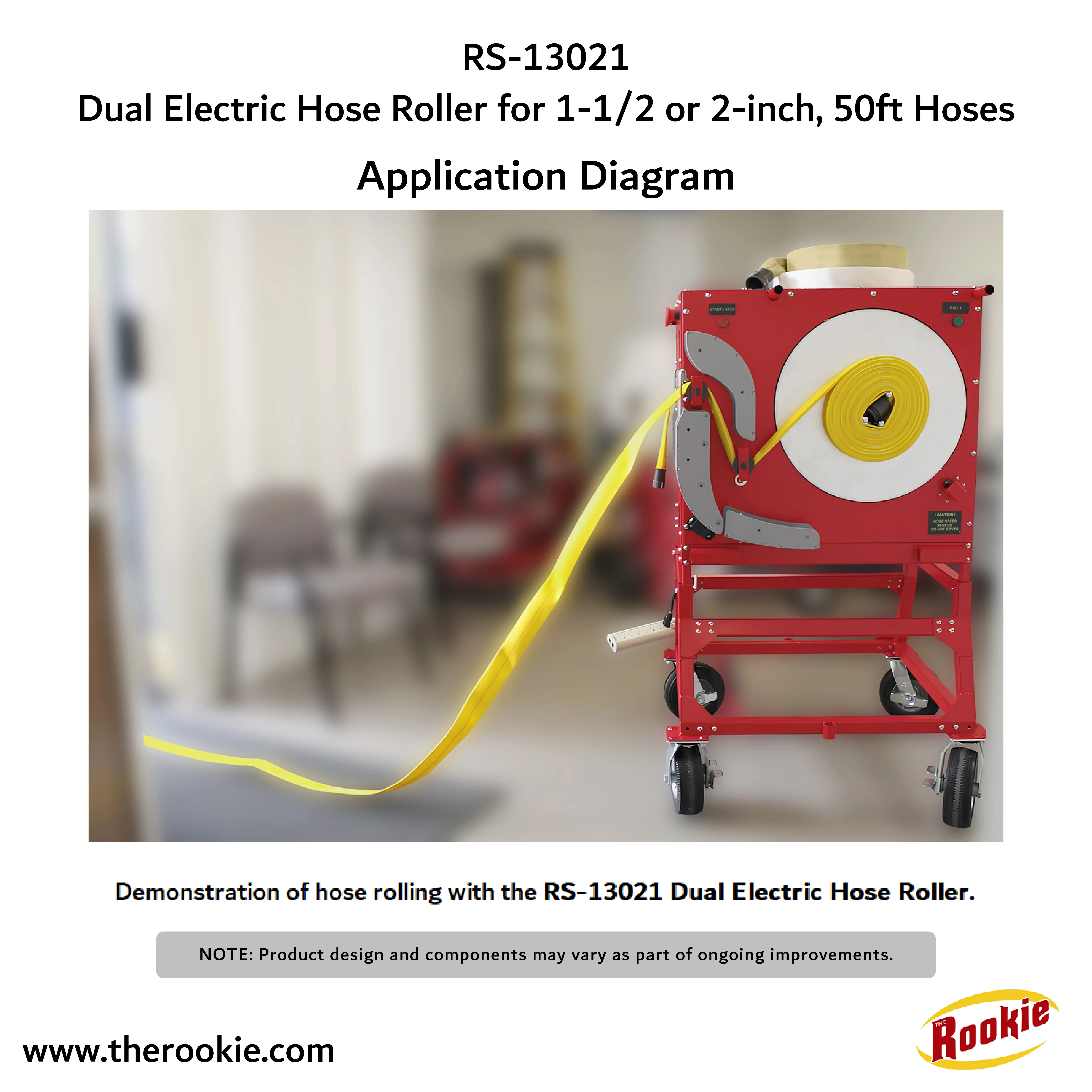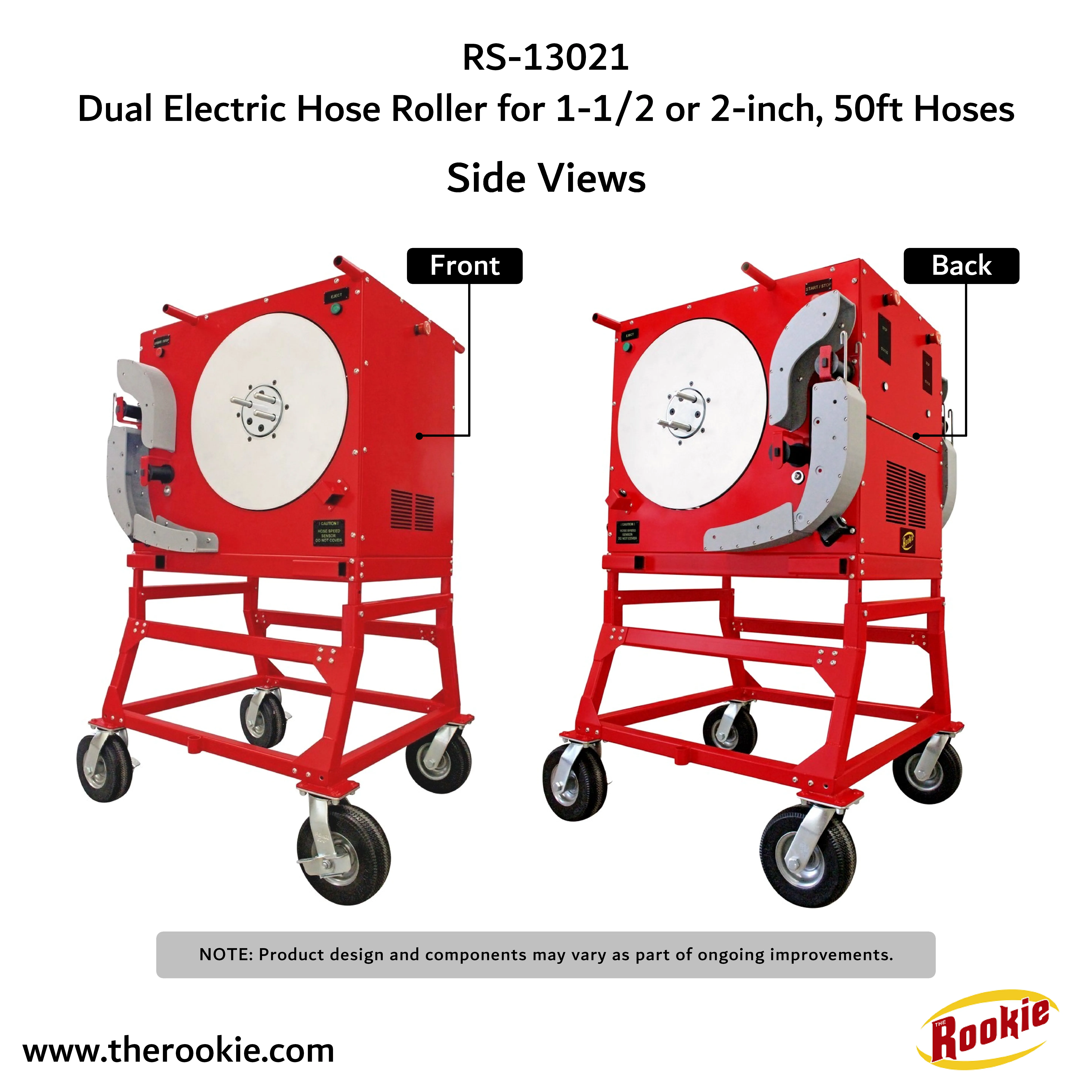 The RS-13021 makes hose rolling faster, safer, and easier. Single 50 ft. hose rolls in 60 seconds. Its independent dual rollers reduce time on the job, its safety controls prevent accidents, and its heavy-duty build ensures lasting performance. The RS-13021 is more than just a tool. It is the smarter way to handle hoses day after day.